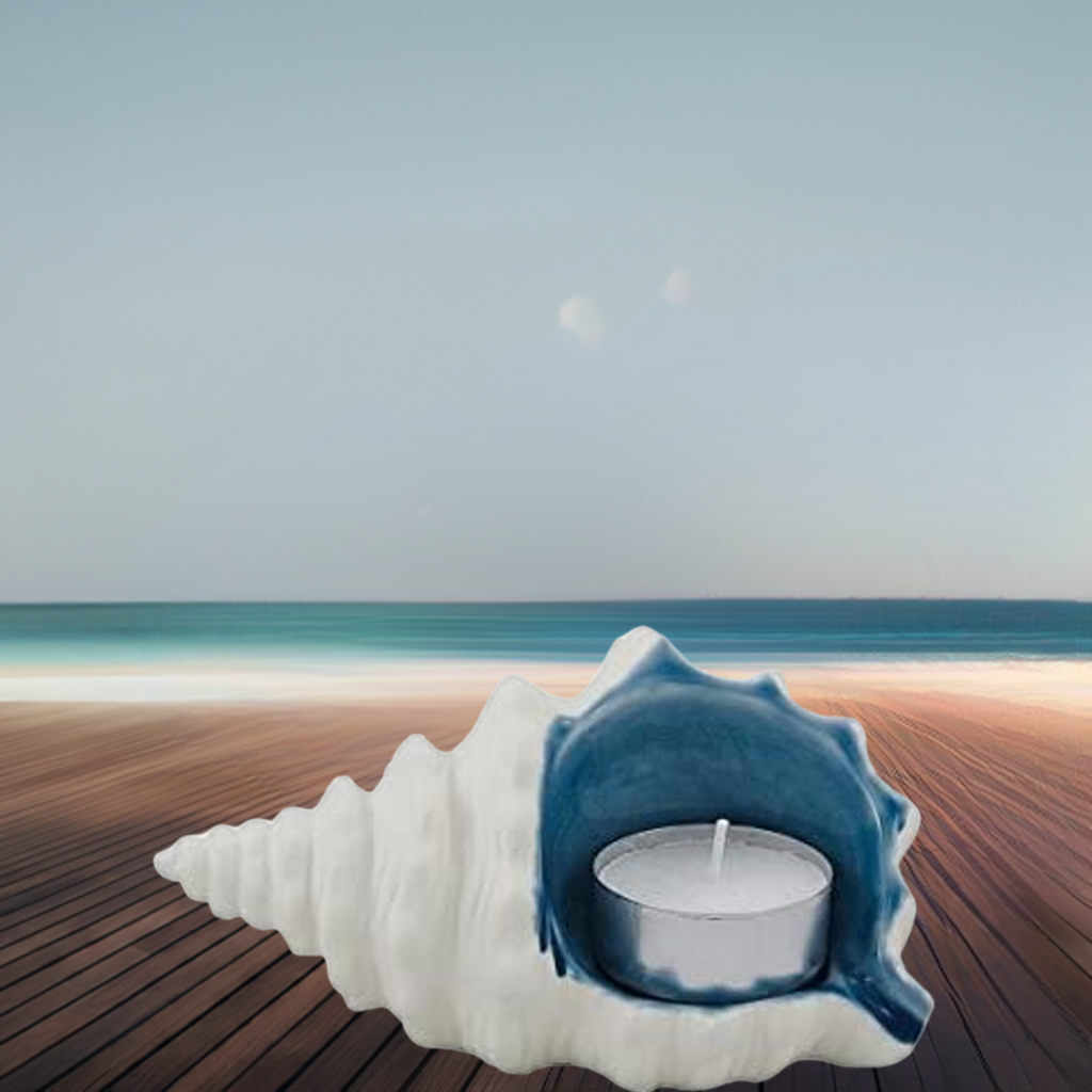 Concha portavelas - color agua - esmaltada - marítima