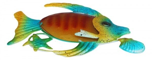 - Fantástica decoración de pared realizada en metal y cristal, pintada. Dimensiones 23x 19x 2 cm.