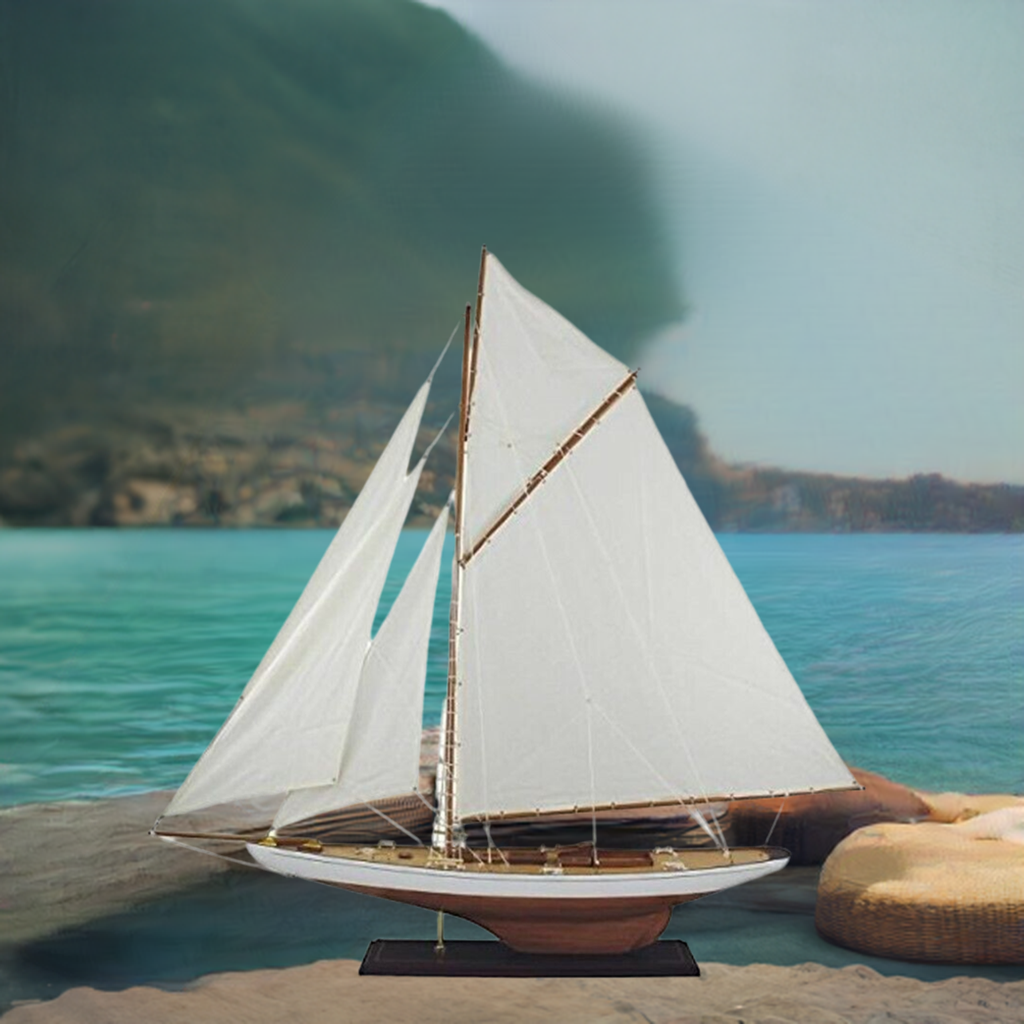 - Este elegante modelo de barco está fabricado detalladamente en madera y tiene robustas velas de tela. El barco mide 121 x 119 cm y está hecho a mano.