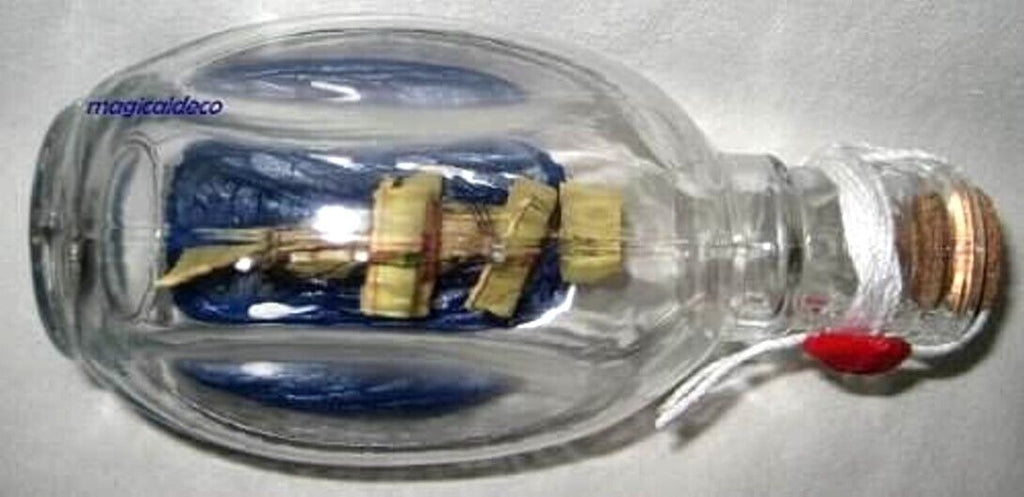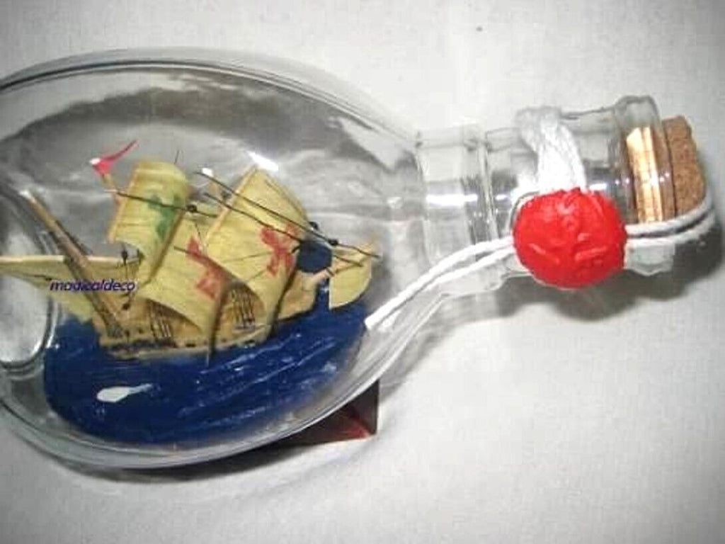 - Hermoso barco de botellas muy decorativo: botella Santa María en Dimple. La longitud total es de 15 cm, la altura es de 9 cm.