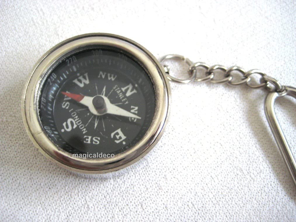- Brújula, obras - Llavero marítimo de latón macizo, niquelado. Longitud total aprox.110 mm. La oferta incluye 2 llaveros. Peso aprox. 25 g cada uno.