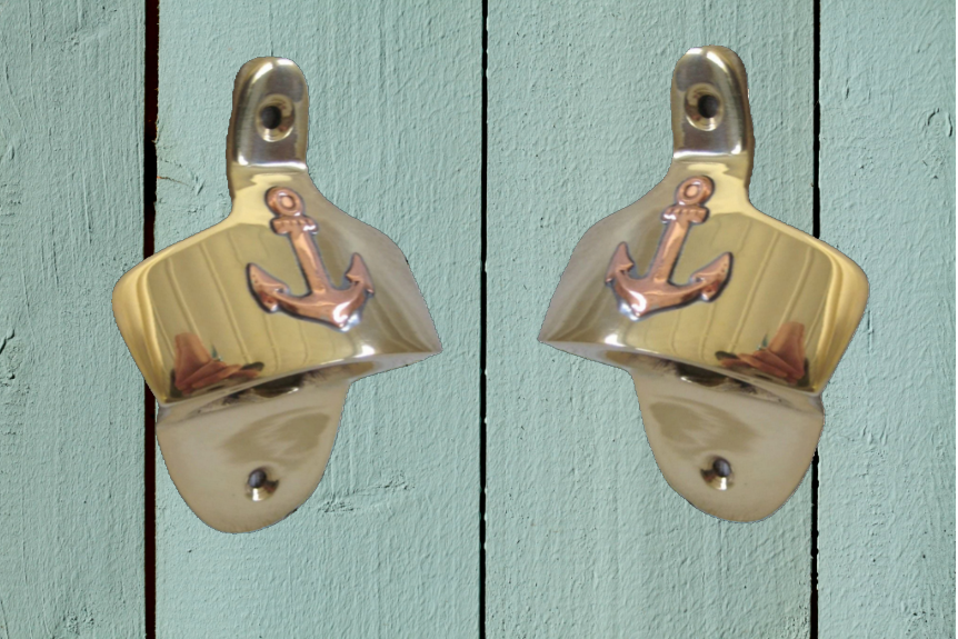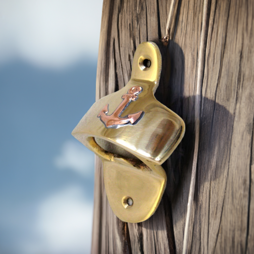- Ancla abridor de botellas fabricada en latón macizo con motivo de ancla.
