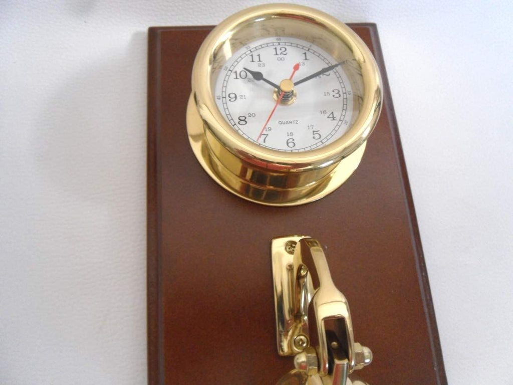 • Reloj en forma de ojo de buey y campana de barco montados sobre panel de madera. Dimensiones totales 23x 15 cm. ¡Un regalo ideal y un accesorio marítimo muy decorativo y especial!