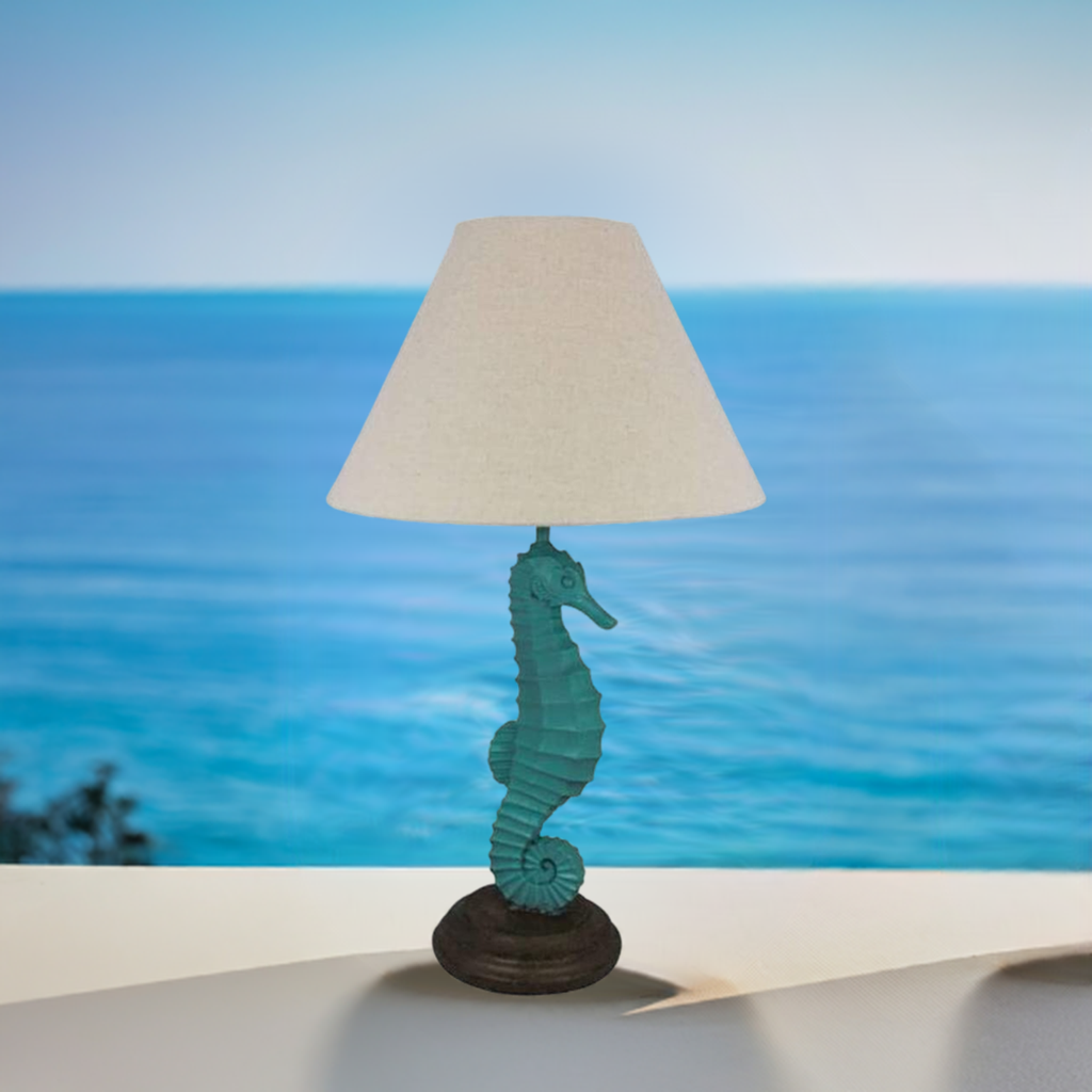 Lámpara de mesa marítima - lámpara de barco Al. 52 cm - pantalla de tela - caballito de mar