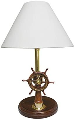 - Lámpara de barco muy decorativa - lámpara de barco - lámpara de mesa en forma de soporte de volante de madera/latón como base de lámpara. Eléctrico, 230V, altura 40 cm. Diámetro 25/15cm.