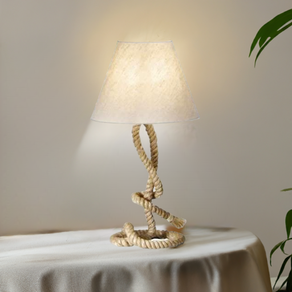 - Original lámpara de mesa/pie marítima con pantalla de tela - eléctrica 230V, E27, 60W. Dimensiones totales 70x 38 cm. La base está hecha de una robusta cuerda de cáñamo.