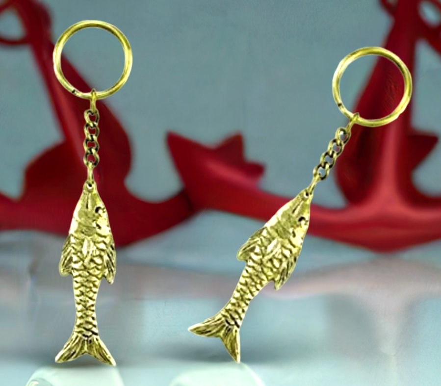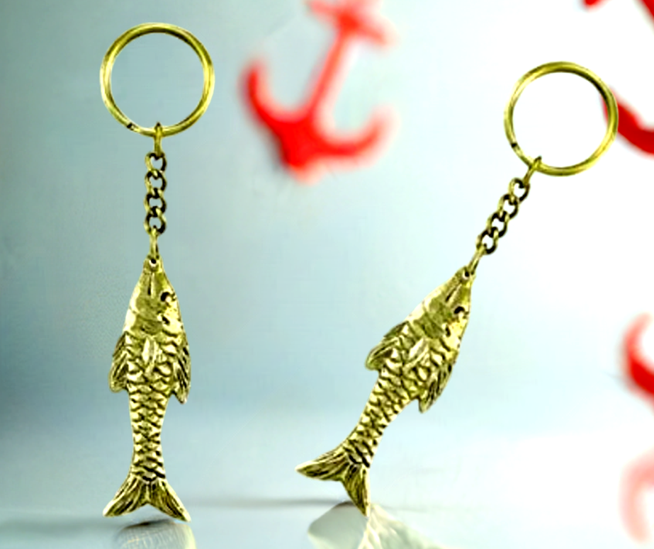 2X maritimer Schlüsselanhänger Fisch- massiv Messing- Schlüsselring
