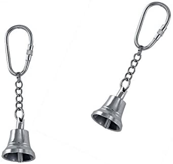 • Maritimer Schlüsselanhänger - Glocke. Gefertigt aus massiv Messing, vernickelt. Gesamtlänge ca. 9 cm. Maße Glöckchen 2x 2,5 cm. Das Angebot beinhaltet 2 Schlüsselanhänger.